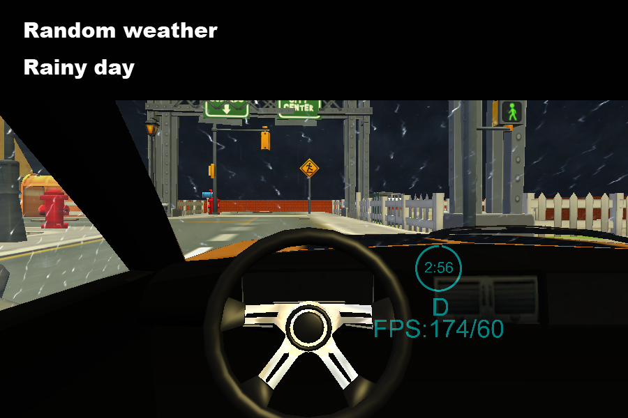 Through this real-road-like virtual environments, even inexperienced drivers can enjoy safe and entertaining parking and driving. In addition, users can choose different whether and time types so that they can adapt more easily to various real driving situations.