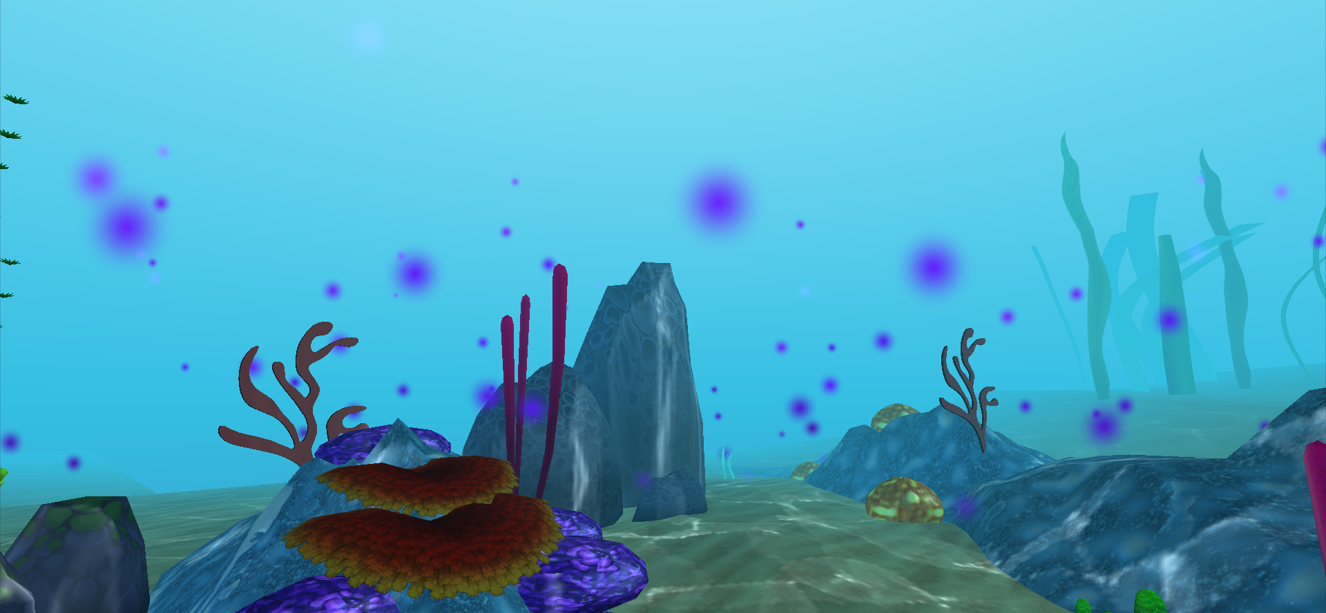 We expect our audience to be new to virtual reality, so the first part of the experience will focus on helping newcomers get comfortable in VR, in order to avoid distractions later during climate change lessons. Visitors will be prompted to look around, 360 degrees, at an array of animated marine life. A small activity using solely look-based interaction will begin, prompting visitors to find different marine creatures and giving them a short soundbyte about that creature when they've found it ("You've spotted coral! Despite their appearance, coral are actually classified as animals. Together, different corals form coral reefs like this one, providing habitats for other marine life.")