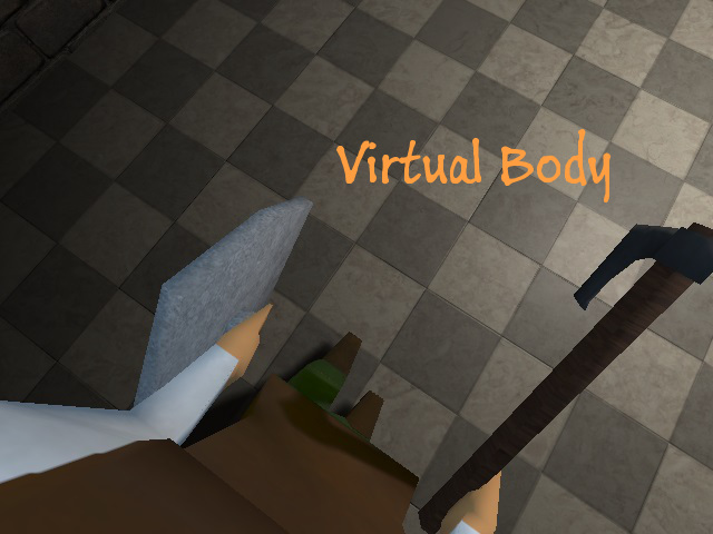 Virtual Body. In this game you control your players body as opposed to the typical first person fasion of floating arms in front of the camera. With the headsets ability to be controlled with your