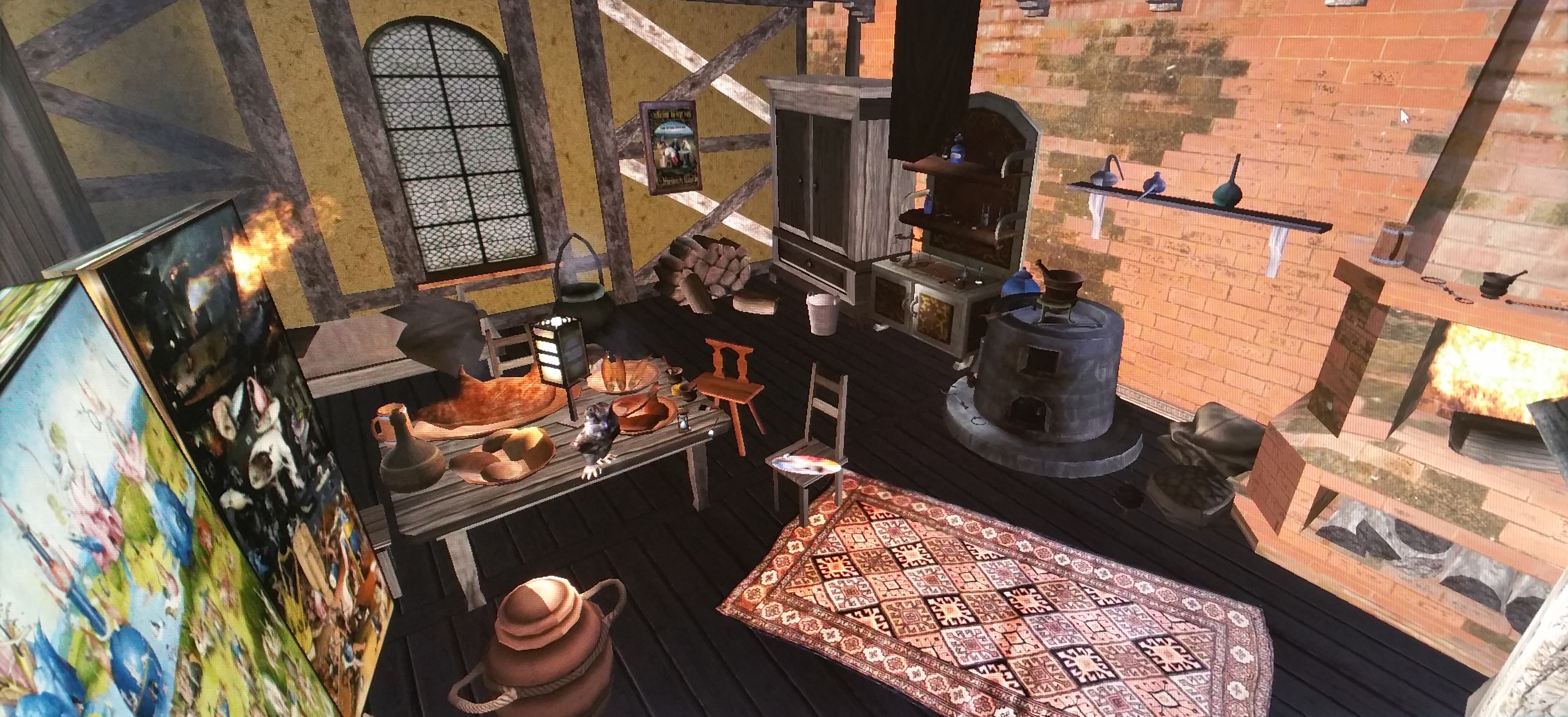 The experience is set in an environment from the period when Bosch lived and painted - his home town of Den Bosch and his studio. The user can either sit back and enjoy a guided tour, or also use their controller to explore the painting in detail and make new discoveries. A guided tour and narration gives the user more insight into the painting. Users can hear the sounds of the people and creatures in the painting, reinforcing the painting scenes, and have a sense of being closer to Bosch's creation. They can perceive more of the painting than ever before due to the close scrutiny, image detail, view controller, unity of environment, sound effects, and music.